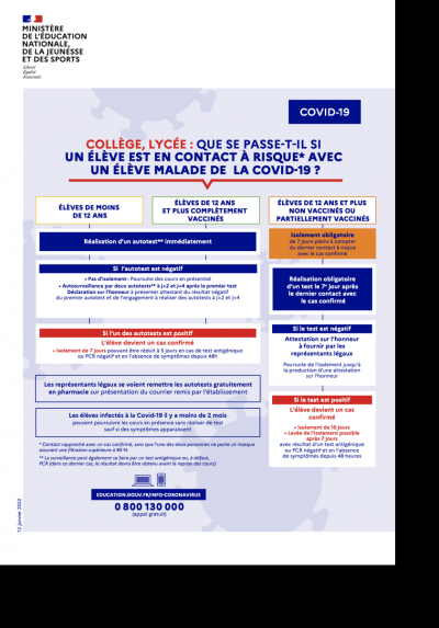 Cas contacts - Infographie Ministère de l’Education Nationale Article mis en ligne le 14 janvier 2022 par Webmestre